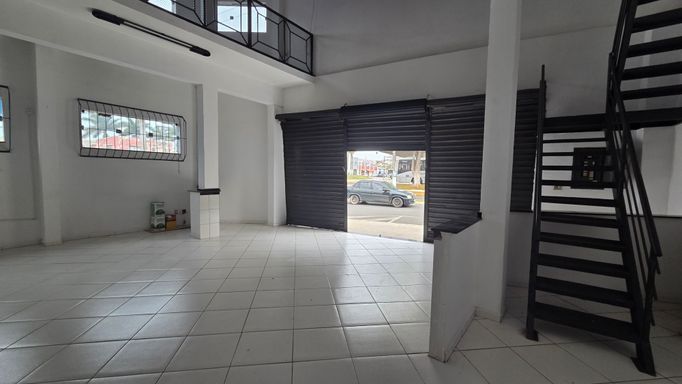 Ponto comercial com ótima localização. No térreo um salão comercial, com dois banheiros, sala e cozinha. No primeiro andar, mezanino grande com acesso a 1 apartamento com quarto, banheiro e cozinha - apartamento esta locado, portanto, não faz parte da locação.